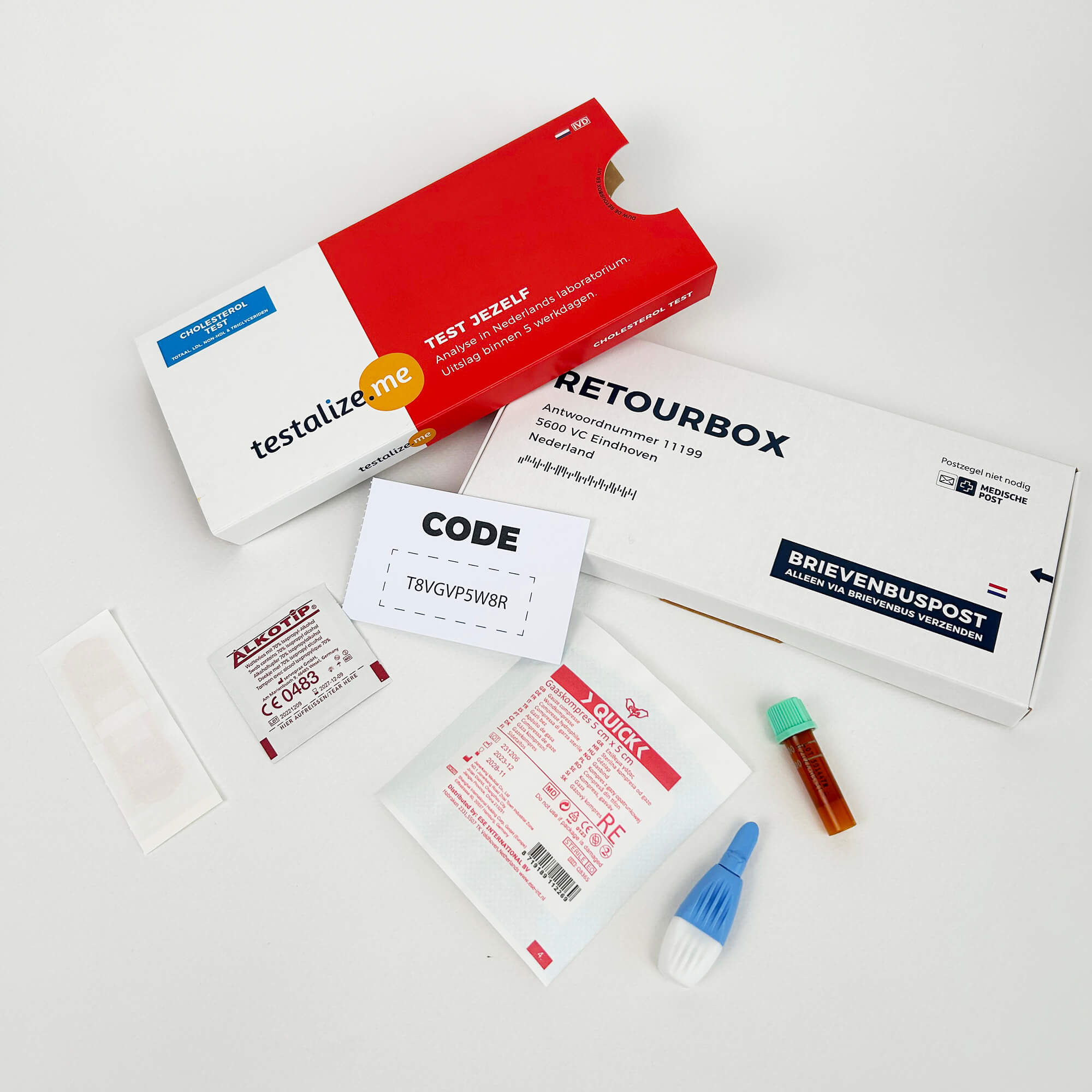 De retourbox met jouw bloed verstuur je gratis via de PostNL brievenbus. De retourbox is vaak de volgende werkdag al binnen in ons laboratorium. Na ontvangst staat je uitslag binnen 5 werkdagen online. Verzend je vanuit België? Lees dan eerst de aanvullende instructies!